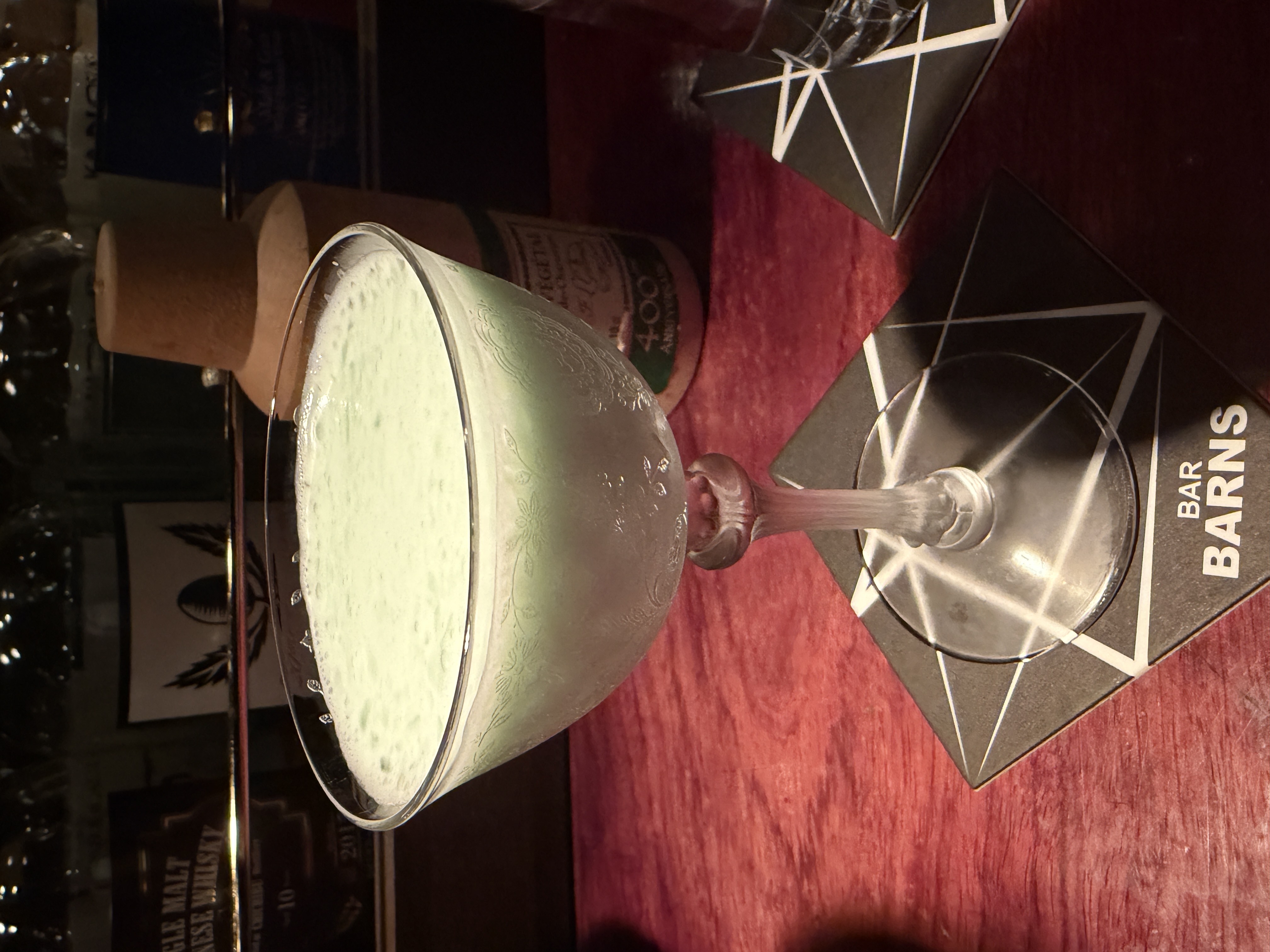 Bar Barnsのグラスホッパーはミントリキュールを2種類ブレンドされており,すっきりとしていてかつ生クリームの深さを感じられてとても美味しかったです.