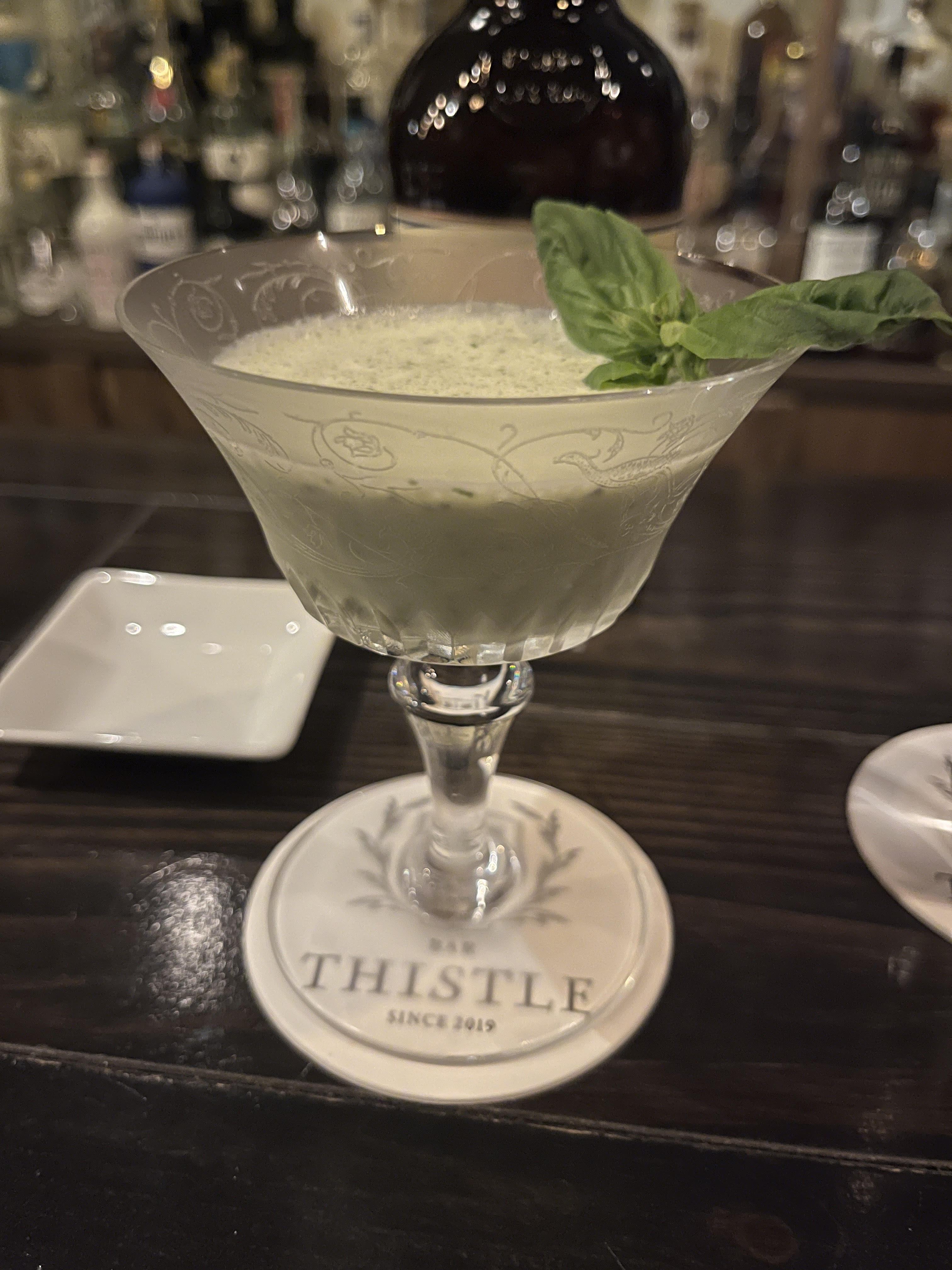私がバーに行き始めて間もない頃にBar Thistleで吉田さんのバジルグラスホッパーを飲んでその美味しさに驚き,好きになったチョコミントの生みの親のデザートカクテルです.