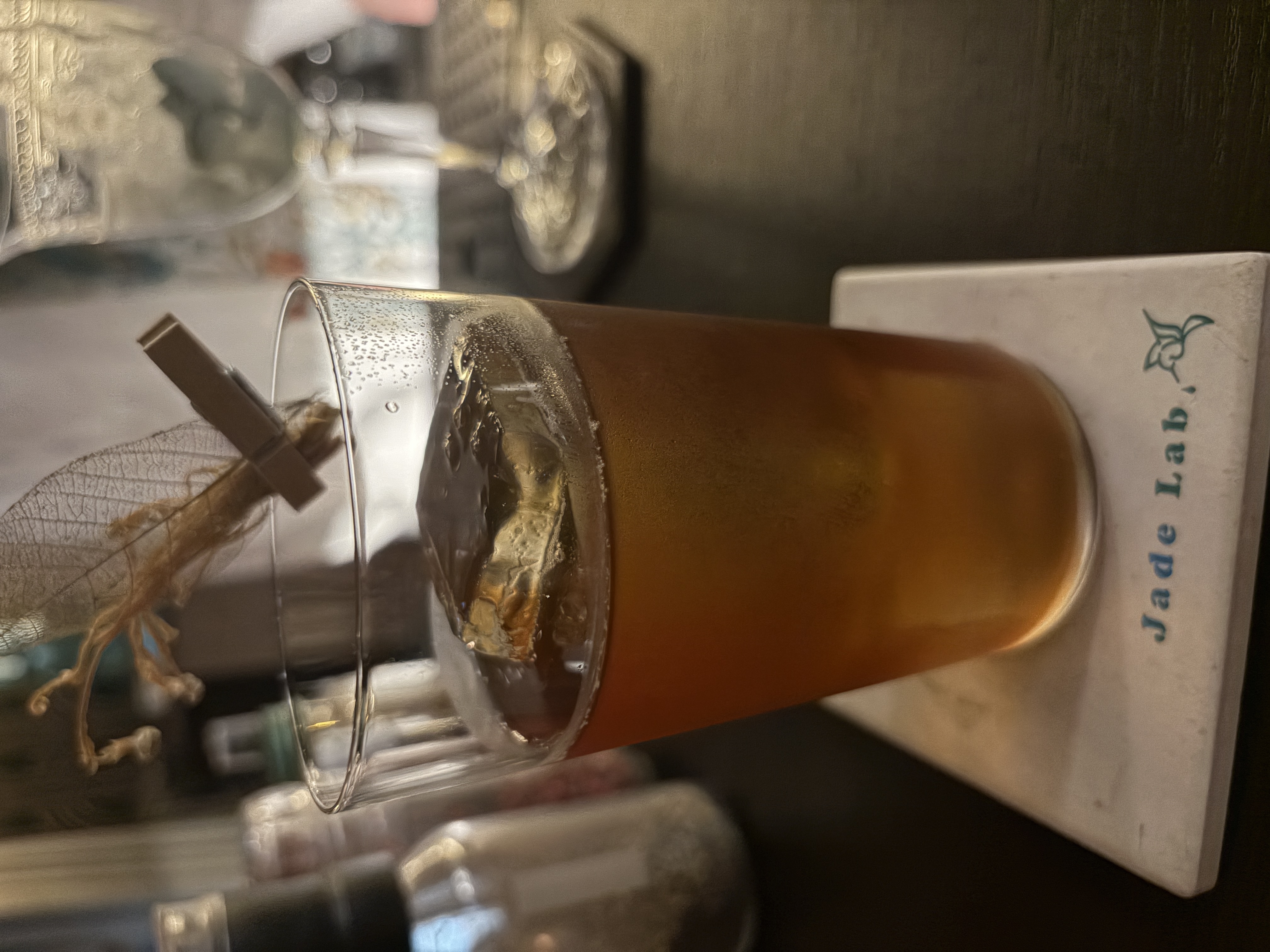 Jade Labの藤井さんのオールドファッションドのお茶割りは香り高くもカクテルの骨格はしっかりしていてとても美味しかったです.